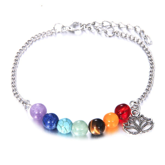 7 Chakra Bracelet with Lotus Charm
