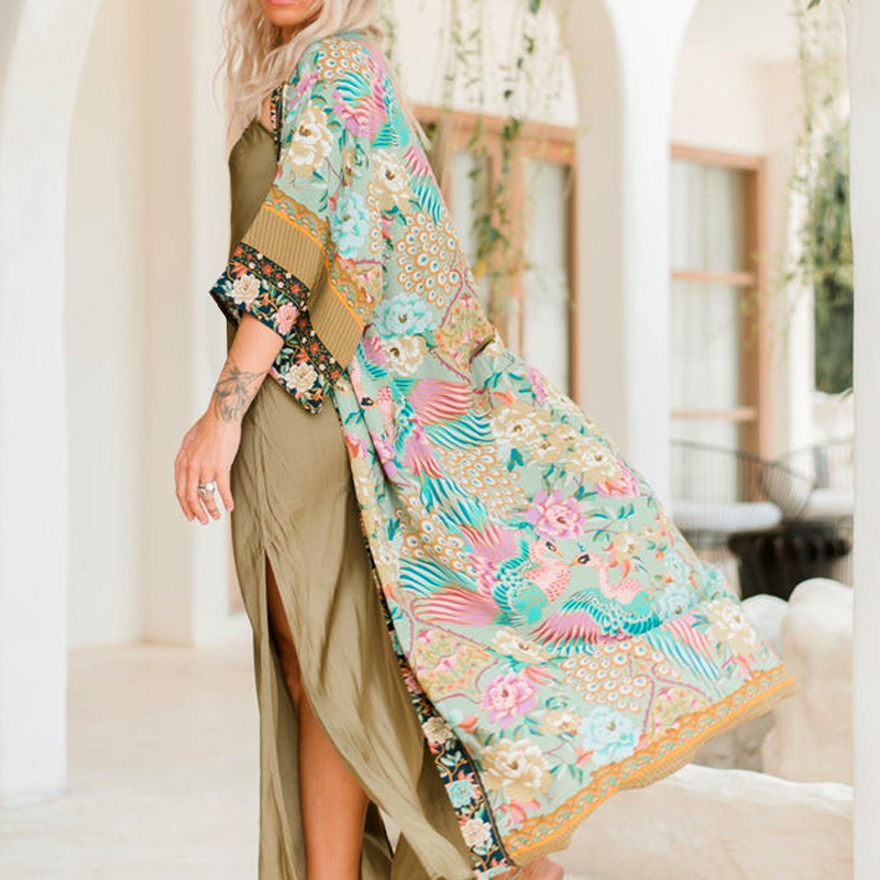 Bohemian Floral Print Kimono Robe – Green